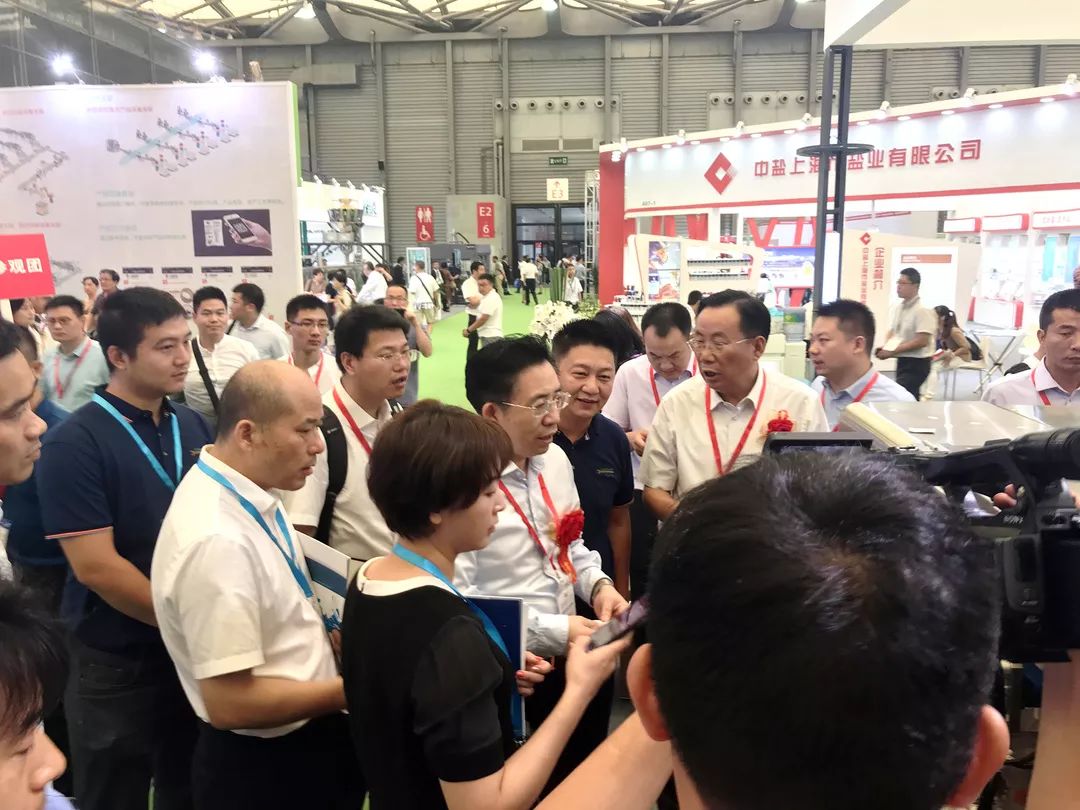 高端現(xiàn)代化的包裝生產(chǎn)線和設(shè)備,吸引了各大鹽業(yè)公司領(lǐng)導(dǎo)和中國(guó)鹽業(yè)協(xié)會(huì)會(huì)長(zhǎng)茆慶國(guó)先生的高度關(guān)注。隨后的茆慶國(guó)會(huì)長(zhǎng)攜中國(guó)鹽業(yè)協(xié)會(huì)領(lǐng)導(dǎo)及各大鹽業(yè)公司領(lǐng)導(dǎo)一行蒞臨我司展位參觀指導(dǎo)